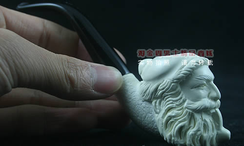 海泡石(meerschaum) 德语“海泡沫”的意思,传说是由海浪头的白沫凝成.海泡石是一种珍贵的多孔矿物,主要成分为含水硅酸镁(magnesium silica),是自然界中最具渗透性的物质之一,由数百万年前,海中微生物的躯壳沉积洋底,石化而成。海泡石是一种极轻质,吸收性极佳的特殊天然材料。最优质、最适合用于烟斗制作的海泡石原料,产自土耳其伊斯坦布尔东南约200英里,名为eskisehir的小村庄附近。工人深入地底约400英尺采挖,过程艰辛。经历多重 筛选、去杂工序,并由熟练工匠精心雕琢,方成就做工精致细巧的精品烟斗和烟嘴。