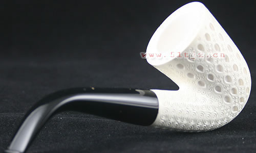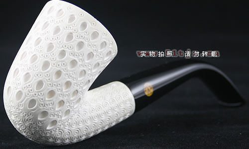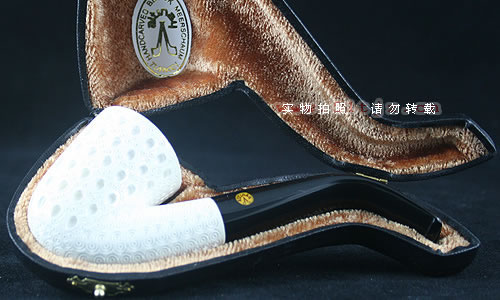 海泡石(meerschaum) 德语“海泡沫”的意思,传说是由海浪头的白沫凝成.海泡石是一种珍贵的多孔矿物,主要成分为含水硅酸镁(magnesium silica),是自然界中最具渗透性的物质之一,由数百万年前,海中微生物的躯壳沉积洋底,石化而成。海泡石是一种极轻质,吸收性极佳的特殊天然材料。最优质、最适合用于烟斗制作的海泡石原料,产自土耳其伊斯坦布尔东南约200英里,名为eskisehir的小村庄附近。工人深入地底约400英尺采挖,过程艰辛。经历多重 筛选、去杂工序,并由熟练工匠精心雕琢,方成就做工精致细巧的精品烟斗和烟嘴。