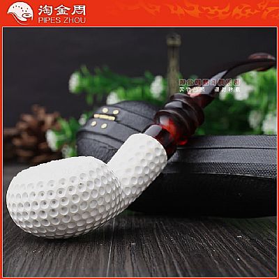 海泡石(meerschaum) 德语“海泡沫”的意思,传说是由海浪头的白沫凝成.海泡石是一种珍贵的多孔矿物,主要成分为含水硅酸镁(magnesium silica),是自然界中最具渗透性的物质之一,由数百万年前,海中微生物的躯壳沉积洋底,石化而成。海泡石是一种极轻质,吸收性极佳的特殊天然材料。最优质、最适合用于烟斗制作的海泡石原料,产自土耳其伊斯坦布尔东南约200英里,名为eskisehir的小村庄附近。工人深入地底约400英尺采挖,过程艰辛。经历多重 筛选、去杂工序,并由熟练工匠精心雕琢,方成就做工精致细巧的精品烟斗和烟嘴。
