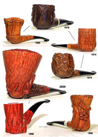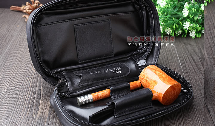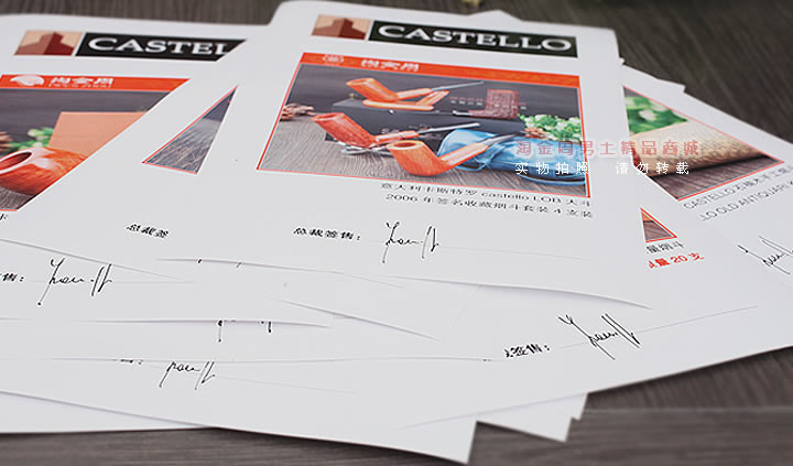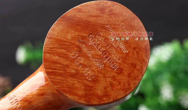 早期 Castello 烟斗跟同期的 DUNHILL 烟斗很相似。后来渐渐的 , 新的外型出现了 . “ 我们生产的 Castello 烟斗的独特性在于它没有可旋转的 bowl,” Coppo 说 “ 当跟有机器摸子做出来的烟斗比较 , 用眼睛就能一下子区分出不同 , 当你用它抽烟的时候你就能品尝出石楠的不同。另外我们烟斗上的瑕疵是浑然天成的 —— 比如天然的植物或者干竭的昆虫 , “Castello 的每一个烟斗在某方面都是不同于另一个的,不管是经典的 , 梦幻的 , 偏好的或者是整齐的 , 对我们来说没有区别 . 然后我们会再用金或者银来修饰,结果是无与伦比的。每一个 Castello 烟斗的是一个艺术品 ” 。
