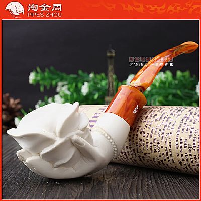 海泡石(meerschaum) 德语“海泡沫”的意思,传说是由海浪头的白沫凝成.海泡石是一种珍贵的多孔矿物,主要成分为含水硅酸镁(magnesium silica),是自然界中最具渗透性的物质之一,由数百万年前,海中微生物的躯壳沉积洋底,石化而成。海泡石是一种极轻质,吸收性极佳的特殊天然材料。最优质、最适合用于烟斗制作的海泡石原料,产自土耳其伊斯坦布尔东南约200英里,名为eskisehir的小村庄附近。工人深入地底约400英尺采挖,过程艰辛。经历多重 筛选、去杂工序,并由熟练工匠精心雕琢,方成就做工精致细巧的精品烟斗和烟嘴。