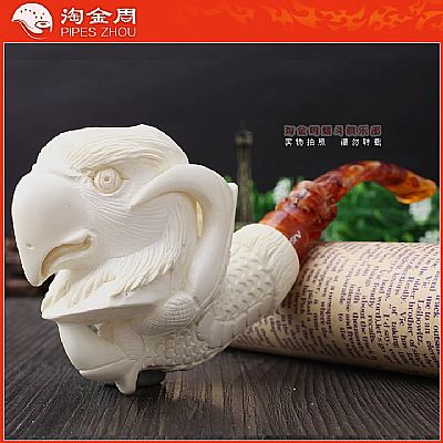 海泡石(meerschaum) 德语“海泡沫”的意思,传说是由海浪头的白沫凝成.海泡石是一种珍贵的多孔矿物,主要成分为含水硅酸镁(magnesium silica),是自然界中最具渗透性的物质之一,由数百万年前,海中微生物的躯壳沉积洋底,石化而成。海泡石是一种极轻质,吸收性极佳的特殊天然材料。最优质、最适合用于烟斗制作的海泡石原料,产自土耳其伊斯坦布尔东南约200英里,名为eskisehir的小村庄附近。工人深入地底约400英尺采挖,过程艰辛。经历多重 筛选、去杂工序,并由熟练工匠精心雕琢,方成就做工精致细巧的精品烟斗和烟嘴。
