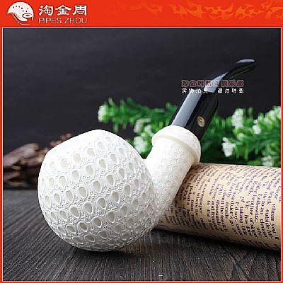 海泡石(meerschaum) 德语“海泡沫”的意思,传说是由海浪头的白沫凝成.海泡石是一种珍贵的多孔矿物,主要成分为含水硅酸镁(magnesium silica),是自然界中最具渗透性的物质之一,由数百万年前,海中微生物的躯壳沉积洋底,石化而成。海泡石是一种极轻质,吸收性极佳的特殊天然材料。最优质、最适合用于烟斗制作的海泡石原料,产自土耳其伊斯坦布尔东南约200英里,名为eskisehir的小村庄附近。工人深入地底约400英尺采挖,过程艰辛。经历多重 筛选、去杂工序,并由熟练工匠精心雕琢,方成就做工精致细巧的精品烟斗和烟嘴。