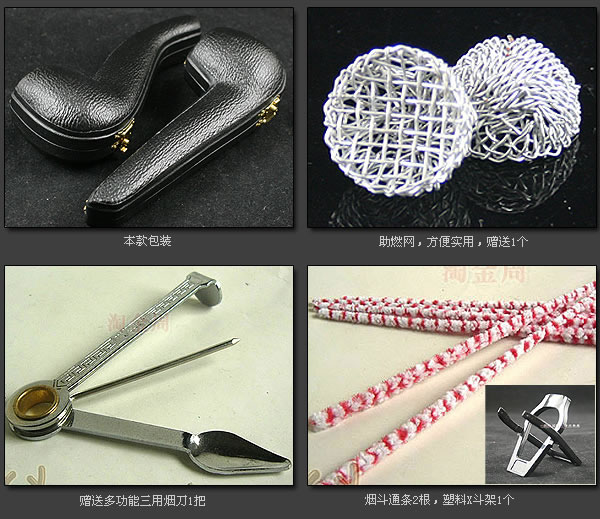 配件:送三用烟刀1把,塑料x斗架1个,过滤芯1包,助燃网1个,通条2根