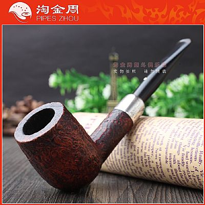 特点:本款烟斗为4号喷砂斗,925银圈军插烟嘴。