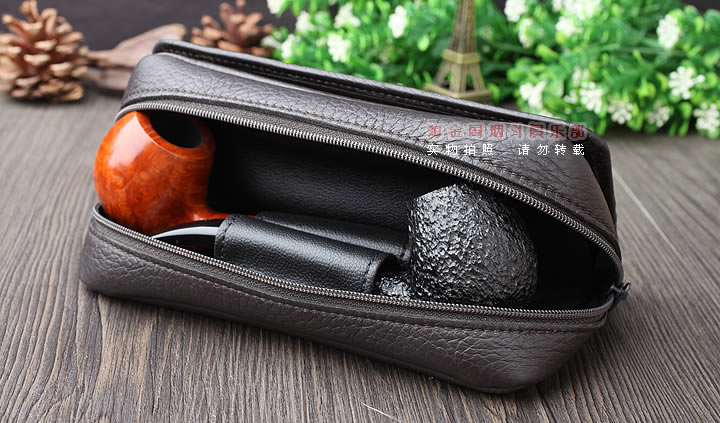 烟斗客的必备 可以容纳2把烟斗,还可放斗丝、配件等常用工具,本品方便实用,特别利于出行时携带,为您的爱斗找个家吧。