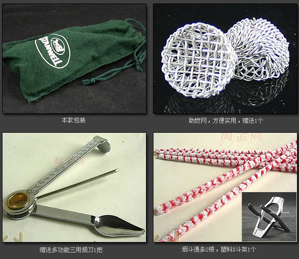 配件:送三用烟刀1把,塑料x斗架1个,助燃网1个,通条2根