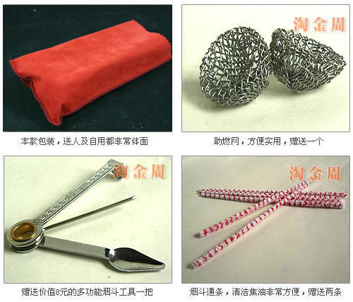 配件:送三用烟刀1把,塑料x斗架1个,过滤蕊1包,助燃网1个,通条2根