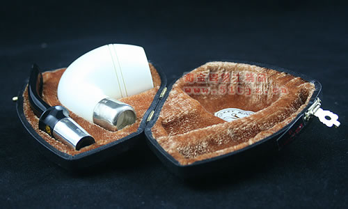海泡石(meerschaum) 德语“海泡沫”的意思,传说是由海浪头的白沫凝成.海泡石是一种珍贵的多孔矿物,主要成分为含水硅酸镁(magnesium silica),是自然界中最具渗透性的物质之一,由数百万年前,海中微生物的躯壳沉积洋底,石化而成。海泡石是一种极轻质,吸收性极佳的特殊天然材料。最优质、最适合用于烟斗制作的海泡石原料,产自土耳其伊斯坦布尔东南约200英里,名为eskisehir的小村庄附近。工人深入地底约400英尺采挖,过程艰辛。经历多重 筛选、去杂工序,并由熟练工匠精心雕琢,方成就做工精致细巧的精品烟斗和烟嘴。