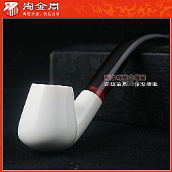 海泡石(meerschaum) 德语“海泡沫”的意思,传说是由海浪头的白沫凝成.海泡石是一种珍贵的多孔矿物,主要成分为含水硅酸镁(magnesium silica),是自然界中最具渗透性的物质之一,由数百万年前,海中微生物的躯壳沉积洋底,石化而成。海泡石是一种极轻质,吸收性极佳的特殊天然材料。最优质、最适合用于烟斗制作的海泡石原料,产自土耳其伊斯坦布尔东南约200英里,名为eskisehir的小村庄附近。工人深入地底约400英尺采挖,过程艰辛。经历多重 筛选、去杂工序,并由熟练工匠精心雕琢,方成就做工精致细巧的精品烟斗和烟嘴。