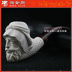 海泡石(meerschaum) 德语“海泡沫”的意思,传说是由海浪头的白沫凝成.海泡石是一种珍贵的多孔矿物,主要成分为含水硅酸镁(magnesium silica),是自然界中最具渗透性的物质之一,由数百万年前,海中微生物的躯壳沉积洋底,石化而成。海泡石是一种极轻质,吸收性极佳的特殊天然材料。最优质、最适合用于烟斗制作的海泡石原料,产自土耳其伊斯坦布尔东南约200英里,名为eskisehir的小村庄附近。工人深入地底约400英尺采挖,过程艰辛。经历多重 筛选、去杂工序,并由熟练工匠精心雕琢,方成就做工精致细巧的精品烟斗和烟嘴。