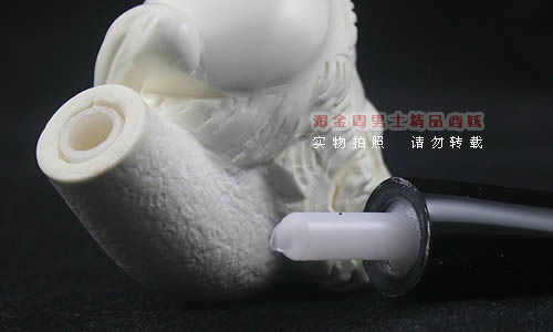 海泡石(meerschaum) 德语“海泡沫”的意思,传说是由海浪头的白沫凝成.海泡石是一种珍贵的多孔矿物,主要成分为含水硅酸镁(magnesium silica),是自然界中最具渗透性的物质之一,由数百万年前,海中微生物的躯壳沉积洋底,石化而成。海泡石是一种极轻质,吸收性极佳的特殊天然材料。最优质、最适合用于烟斗制作的海泡石原料,产自土耳其伊斯坦布尔东南约200英里,名为eskisehir的小村庄附近。工人深入地底约400英尺采挖,过程艰辛。经历多重 筛选、去杂工序,并由熟练工匠精心雕琢,方成就做工精致细巧的精品烟斗和烟嘴。