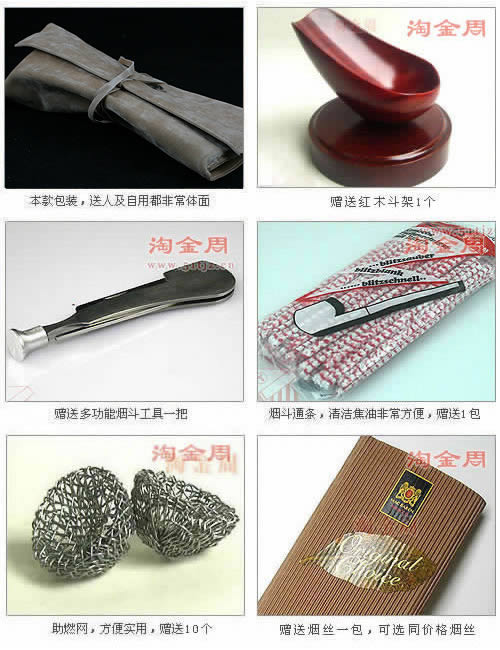 配件:送三用烟刀1把,红木斗架1个,助燃网10个,通条1包,