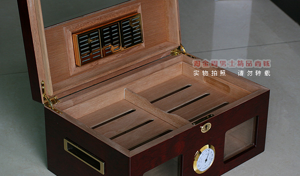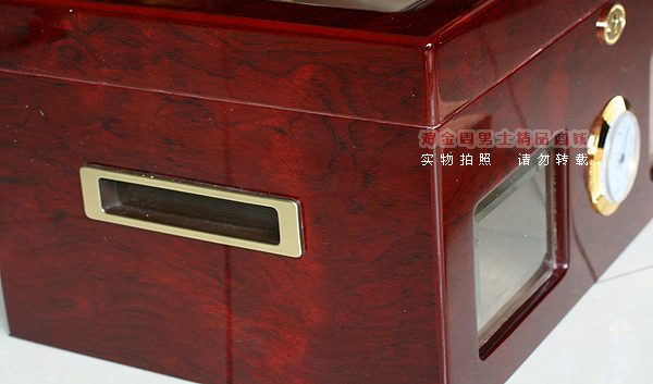 【物品描述】花梨木高光雪茄盒带三面玻璃 ,可装100支左右,保湿棉采用磁铁吸顶设计,注水非常方便