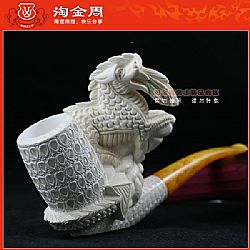 海泡石(meerschaum) 德语“海泡沫”的意思,传说是由海浪头的白沫凝成.海泡石是一种珍贵的多孔矿物,主要成分为含水硅酸镁(magnesium silica),是自然界中最具渗透性的物质之一,由数百万年前,海中微生物的躯壳沉积洋底,石化而成。海泡石是一种极轻质,吸收性极佳的特殊天然材料。最优质、最适合用于烟斗制作的海泡石原料,产自土耳其伊斯坦布尔东南约200英里,名为eskisehir的小村庄附近。工人深入地底约400英尺采挖,过程艰辛。经历多重 筛选、去杂工序,并由熟练工匠精心雕琢,方成就做工精致细巧的精品烟斗和烟嘴。
