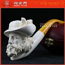 海泡石(meerschaum) 德语“海泡沫”的意思,传说是由海浪头的白沫凝成.海泡石是一种珍贵的多孔矿物,主要成分为含水硅酸镁(magnesium silica),是自然界中最具渗透性的物质之一,由数百万年前,海中微生物的躯壳沉积洋底,石化而成。海泡石是一种极轻质,吸收性极佳的特殊天然材料。最优质、最适合用于烟斗制作的海泡石原料,产自土耳其伊斯坦布尔东南约200英里,名为eskisehir的小村庄附近。工人深入地底约400英尺采挖,过程艰辛。经历多重 筛选、去杂工序,并由熟练工匠精心雕琢,方成就做工精致细巧的精品烟斗和烟嘴。