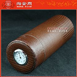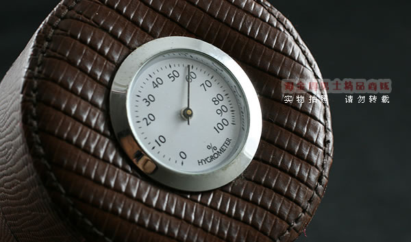 材料:咖啡色真皮雪茄管,蜥蜴皮纹,内部西打木,带湿度计,保湿条