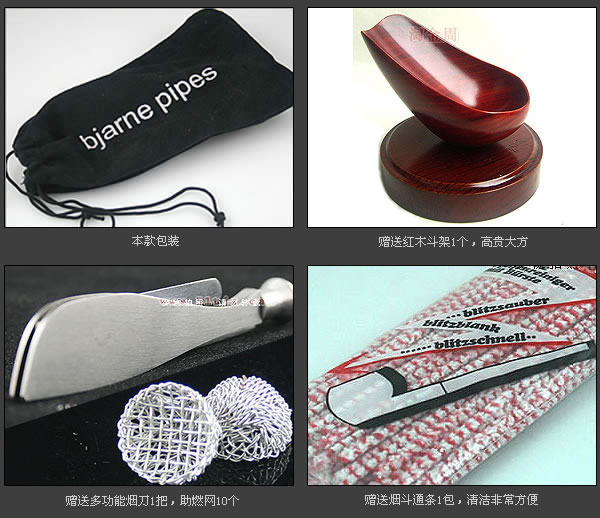 配件:送三用烟刀1把,红木斗架1个,助燃网10个,通条1包,过滤芯1包,