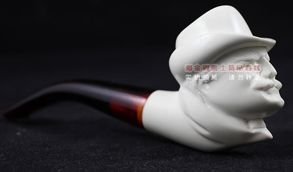 海泡石(meerschaum) 德语“海泡沫”的意思,传说是由海浪头的白沫凝成.海泡石是一种珍贵的多孔矿物,主要成分为含水硅酸镁(magnesium silica),是自然界中最具渗透性的物质之一,由数百万年前,海中微生物的躯壳沉积洋底,石化而成。海泡石是一种极轻质,吸收性极佳的特殊天然材料。最优质、最适合用于烟斗制作的海泡石原料,产自土耳其伊斯坦布尔东南约200英里,名为eskisehir的小村庄附近。工人深入地底约400英尺采挖,过程艰辛。经历多重 筛选、去杂工序,并由熟练工匠精心雕琢,方成就做工精致细巧的精品烟斗和烟嘴。