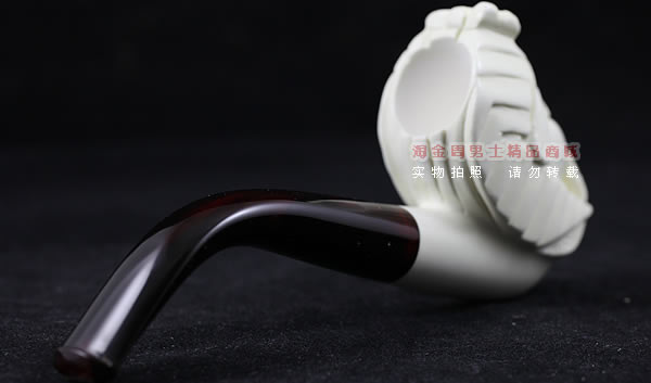 海泡石(meerschaum) 德语“海泡沫”的意思,传说是由海浪头的白沫凝成.海泡石是一种珍贵的多孔矿物,主要成分为含水硅酸镁(magnesium silica),是自然界中最具渗透性的物质之一,由数百万年前,海中微生物的躯壳沉积洋底,石化而成。海泡石是一种极轻质,吸收性极佳的特殊天然材料。最优质、最适合用于烟斗制作的海泡石原料,产自土耳其伊斯坦布尔东南约200英里,名为eskisehir的小村庄附近。工人深入地底约400英尺采挖,过程艰辛。经历多重 筛选、去杂工序,并由熟练工匠精心雕琢,方成就做工精致细巧的精品烟斗和烟嘴。