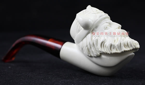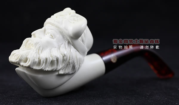 海泡石(meerschaum) 德语“海泡沫”的意思,传说是由海浪头的白沫凝成.海泡石是一种珍贵的多孔矿物,主要成分为含水硅酸镁(magnesium silica),是自然界中最具渗透性的物质之一,由数百万年前,海中微生物的躯壳沉积洋底,石化而成。海泡石是一种极轻质,吸收性极佳的特殊天然材料。最优质、最适合用于烟斗制作的海泡石原料,产自土耳其伊斯坦布尔东南约200英里,名为eskisehir的小村庄附近。工人深入地底约400英尺采挖,过程艰辛。经历多重 筛选、去杂工序,并由熟练工匠精心雕琢,方成就做工精致细巧的精品烟斗和烟嘴。