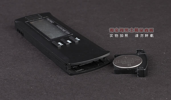 提示:使用前请先将电池插入侧边的电池盒,然后再打开侧边的开关按钮,方可显示温湿度,机身三个键分别为华氏与摄氏转换,开机后录得最低温湿度(MIN),与最高温湿度(MAX)
