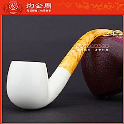 海泡石(meerschaum) 德语“海泡沫”的意思,传说是由海浪头的白沫凝成.海泡石是一种珍贵的多孔矿物,主要成分为含水硅酸镁(magnesium silica),是自然界中最具渗透性的物质之一,由数百万年前,海中微生物的躯壳沉积洋底,石化而成。海泡石是一种极轻质,吸收性极佳的特殊天然材料。最优质、最适合用于烟斗制作的海泡石原料,产自土耳其伊斯坦布尔东南约200英里,名为eskisehir的小村庄附近。工人深入地底约400英尺采挖,过程艰辛。经历多重 筛选、去杂工序,并由熟练工匠精心雕琢,方成就做工精致细巧的精品烟斗和烟嘴。