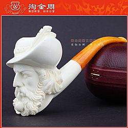 海泡石(meerschaum) 德语“海泡沫”的意思,传说是由海浪头的白沫凝成.海泡石是一种珍贵的多孔矿物,主要成分为含水硅酸镁(magnesium silica),是自然界中最具渗透性的物质之一,由数百万年前,海中微生物的躯壳沉积洋底,石化而成。海泡石是一种极轻质,吸收性极佳的特殊天然材料。最优质、最适合用于烟斗制作的海泡石原料,产自土耳其伊斯坦布尔东南约200英里,名为eskisehir的小村庄附近。工人深入地底约400英尺采挖,过程艰辛。经历多重 筛选、去杂工序,并由熟练工匠精心雕琢,方成就做工精致细巧的精品烟斗和烟嘴。