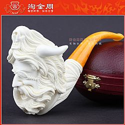 海泡石(meerschaum) 德语“海泡沫”的意思,传说是由海浪头的白沫凝成.海泡石是一种珍贵的多孔矿物,主要成分为含水硅酸镁(magnesium silica),是自然界中最具渗透性的物质之一,由数百万年前,海中微生物的躯壳沉积洋底,石化而成。海泡石是一种极轻质,吸收性极佳的特殊天然材料。最优质、最适合用于烟斗制作的海泡石原料,产自土耳其伊斯坦布尔东南约200英里,名为eskisehir的小村庄附近。工人深入地底约400英尺采挖,过程艰辛。经历多重 筛选、去杂工序,并由熟练工匠精心雕琢,方成就做工精致细巧的精品烟斗和烟嘴。