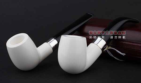 海泡石(meerschaum) 德语“海泡沫”的意思,传说是由海浪头的白沫凝成.海泡石是一种珍贵的多孔矿物,主要成分为含水硅酸镁(magnesium silica),是自然界中最具渗透性的物质之一,由数百万年前,海中微生物的躯壳沉积洋底,石化而成。海泡石是一种极轻质,吸收性极佳的特殊天然材料。最优质、最适合用于烟斗制作的海泡石原料,产自土耳其伊斯坦布尔东南约200英里,名为eskisehir的小村庄附近。工人深入地底约400英尺采挖,过程艰辛。经历多重 筛选、去杂工序,并由熟练工匠精心雕琢,方成就做工精致细巧的精品烟斗和烟嘴。