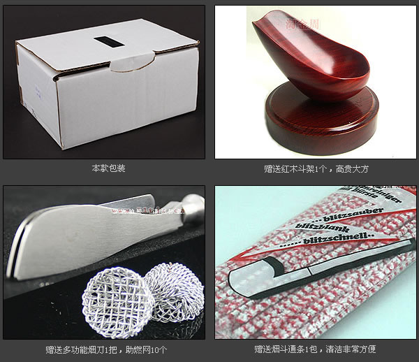 配件:送三用烟刀1把,红木斗架1个,助燃网10个,通条1包,