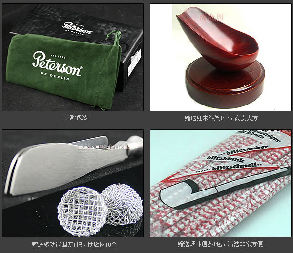 charles peterson当初的发明,一直传承至今。1890年,peterson又研发出革命性的“系统烟斗”(syetem pipe),把烟草燃烧时冷凝下来的多余水汽,收集在特别设计的收集槽中;并配专利设计的斜度烟嘴。“系统烟斗”无疑为烟斗客们提供了空前绝后的干爽吸烟口感。peterson--“the thinking man’s pipe”,流行了一个多世纪,延续至今。