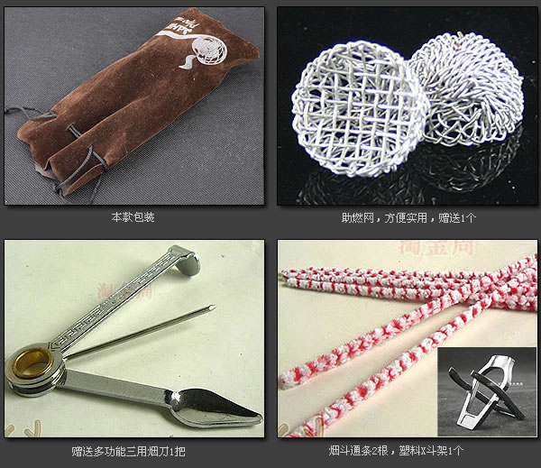配件:送三用烟刀1把,塑料x斗架1个,过滤芯1包,助燃网1个,通条2根