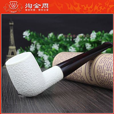 海泡石(meerschaum) 德语“海泡沫”的意思,传说是由海浪头的白沫凝成.海泡石是一种珍贵的多孔矿物,主要成分为含水硅酸镁(magnesium silica),是自然界中最具渗透性的物质之一,由数百万年前,海中微生物的躯壳沉积洋底,石化而成。海泡石是一种极轻质,吸收性极佳的特殊天然材料。最优质、最适合用于烟斗制作的海泡石原料,产自土耳其伊斯坦布尔东南约200英里,名为eskisehir的小村庄附近。工人深入地底约400英尺采挖,过程艰辛。经历多重 筛选、去杂工序,并由熟练工匠精心雕琢,方成就做工精致细巧的精品烟斗和烟嘴。