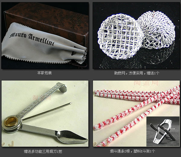配件:送三用烟刀1把,塑料X斗架1个,助燃网1个,通条2根,进口过滤芯10粒