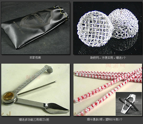配件:送三用烟刀1把,塑料X斗架1个,助燃网1个,通条2根
