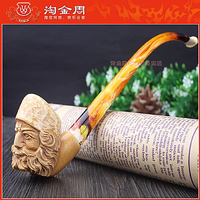 海泡石(meerschaum) 德语“海泡沫”的意思,传说是由海浪头的白沫凝成.海泡石是一种珍贵的多孔矿物,主要成分为含水硅酸镁(magnesium silica),是自然界中最具渗透性的物质之一,由数百万年前,海中微生物的躯壳沉积洋底,石化而成。海泡石是一种极轻质,吸收性极佳的特殊天然材料。最优质、最适合用于烟斗制作的海泡石原料,产自土耳其伊斯坦布尔东南约200英里,名为eskisehir的小村庄附近。工人深入地底约400英尺采挖,过程艰辛。经历多重 筛选、去杂工序,并由熟练工匠精心雕琢,方成就做工精致细巧的精品烟斗和烟嘴。