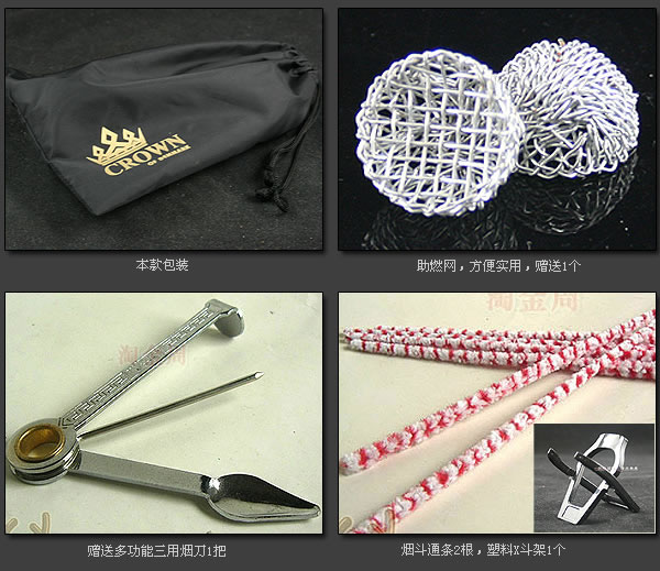 配件:送三用烟刀1把,塑料x斗架1个,助燃网1个,通条2根,过滤芯1包