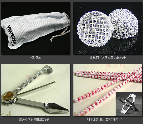 配件:送三用烟刀1把,塑料x斗架1个,助燃网1个,通条2根