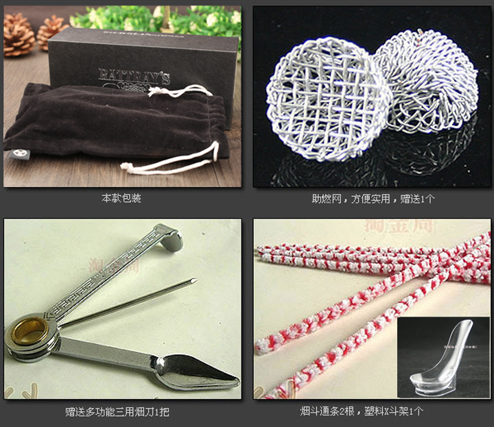 配件:送三用烟刀1把,塑料斗架1个,助燃网1个,通条2根