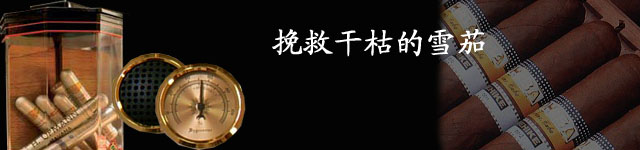干枯的雪茄是很难恢复到原来的风貌的。但是实际上,雪茄中失去的水分是可以补回来的。一个最简单、最有效的方法是将拆封过的雪茄盒放入一个大的塑料袋中(袋口不完全密封·以利空气流通),再在袋中放一瓶水或一块湿海绵,每隔几天转动雪茄·并把底层雪茄翻到上 层,3星期之后,雪茄便恢复到可抽吸的程度了。