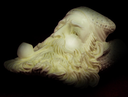 海泡石质轻,散热性好,而且由于石质细腻、柔软,故能在外壁雕刻出十分精巧细致的浮雕图案(一般取材自古希腊、古罗马的神话故事,也有动植物、人物等造型),具有很高的艺术价值。这也是其优于石楠根的地方之一。烟嘴一般用天然 / 合成的琥珀,或者动物的角、骨制造。海泡石因其特殊性质,较适合作为造烟斗的材料.海泡石干燥时轻且坚硬,可浮于水面;潮湿时不仅非常光滑,而且较软易于雕琢,制成的艺术品质感细腻富有灵性。神奇的是,高品质的海泡石含有特殊的化学成分,可以过滤尼古丁,用这种海泡石制成的实用型烟斗是珍贵的艺术品。