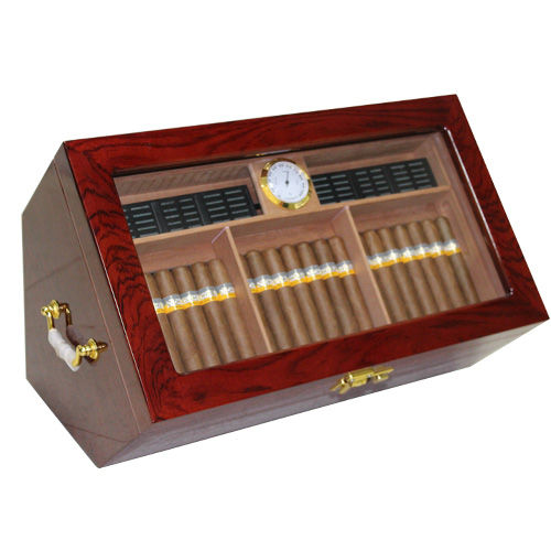 一般的雪茄客只需要置备一个雪茄保湿盒,这个是最基础的保存器具。雪茄保湿盒的大小形状也有很多种,它的材质也是雪茄木制成的,内部一般都有加湿装置,用来保持盒内的水分。还有一个湿度计用来检测盒内的湿度。