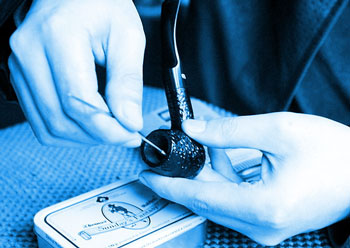 烟斗一般有两部分组成,即烟锅和烟斗嘴。烟斗嘴常用热固性材料(如胶木或尼龙等)制成,过去还有硬橡胶和琥珀的。当年抠麻栎疙瘩的人多是用有机玻璃做烟嘴。但是时间长了了,烟油子粘在上面就不甚美雅了。现在市场里卖的烟斗都可以配上一种金属丝网做的烟丝架,这样做的目的是让烟丝充分燃烧而节省烟斗丝。买烟斗时别忘了买清烟道的棉条。抽一段时间的烟斗后,要将烟嘴拔下来,用棉条清理烟道。烟斗要精心地维护,因为烟斗经常被加热,所以时间长了会变色,如果养护得当,它会变得越来越深,很好看。但是由于手汗中含有酸液,会使烟斗失去光泽,所以每次用完要认真擦洗。