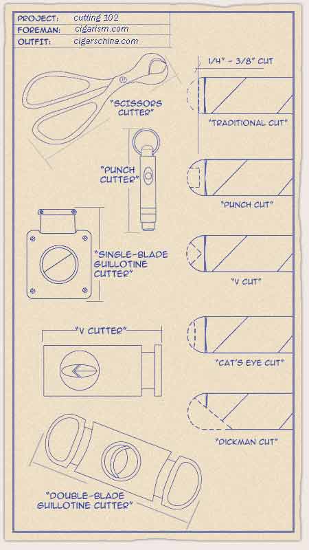拿起雪茄,你首先面临一个剪口的问题。剪口的基本就是不要破坏茄衣(WRAPPER)。手工雪茄的首端(牌子的一端)是封闭的,你得用雪茄剪把这个密封头剪一个切口,才能吸食。剪切的尺寸和力度,全靠你自己把握了——一般来说,切口的直径应该掌握在雪茄主干直径的3/4。