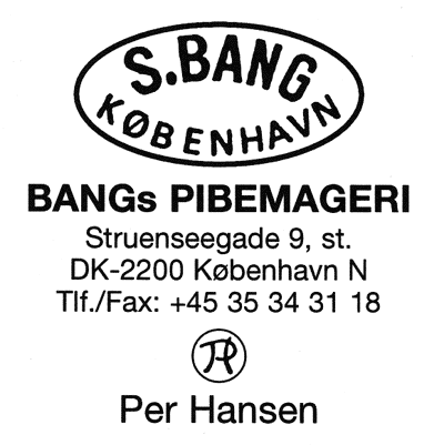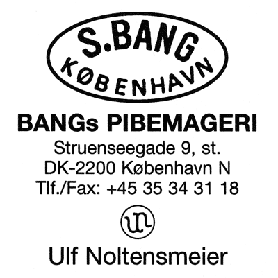 | S.Bang的工作室在丹麦的哥本哈根闹市区里非常的不显眼。在一条街的后面,穿过一个巷子,走上一个楼梯,然后就能看见一个不起眼的小标志,这个就是他的工作室了。房间里,有两张给两个大师放置成品烟斗的桌子,其中一张靠着通向厨房的走道。房间的另一面,是另一个屋子的入口,这里是摆放各种制作工具的房间,比如车床,钻头,磨沙机等等,同时也是石楠木根瘤的储藏室。就是这样一个简陋的工作室里做出的极品烟斗销往丹麦以外的国家,比如台湾,日本,德国和意大利。就是这样的一个在丹麦市场几乎很少销售的烟斗,却在世界各地都受到欢迎和尊重。Sved Bang, 是 S. Bang这个知名烟斗品牌的创始人,在二战期间就开始接触与烟斗和烟草有关的领域。二战期间,他先后为不同的烟草商店工作过,二战后,他跟随著名的烟草商人,W.Q.Larsen 工作了一段时间。在 1968 年,他在哥本哈根开了自己的烟斗店。随着烟斗和烟草生意的兴隆, Bang开始注重与烟斗相关的其他服务,比如他在自己店里开一间小房间专门用做烟斗的维修。在 1970 年,维修烟斗的人变成了曾跟随著名烟斗大师Perben Holm 学艺的 Per Hansen。 |  |