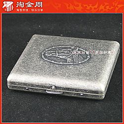 正品 双枪20支仿古银纯铜烟盒 马头图案
