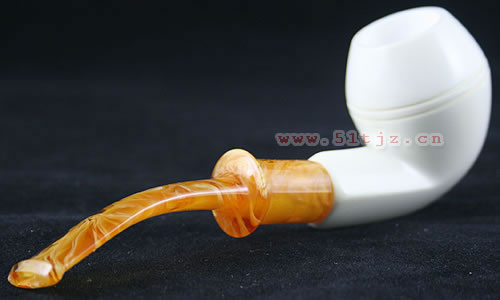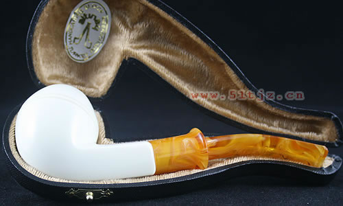 海泡石(meerschaum) 德语“海泡沫”的意思,传说是由海浪头的白沫凝成.海泡石是一种珍贵的多孔矿物,主要成分为含水硅酸镁(magnesium silica),是自然界中最具渗透性的物质之一,由数百万年前,海中微生物的躯壳沉积洋底,石化而成。海泡石是一种极轻质,吸收性极佳的特殊天然材料。最优质、最适合用于烟斗制作的海泡石原料,产自土耳其伊斯坦布尔东南约200英里,名为eskisehir的小村庄附近。工人深入地底约400英尺采挖,过程艰辛。经历多重 筛选、去杂工序,并由熟练工匠精心雕琢,方成就做工精致细巧的精品烟斗和烟嘴。