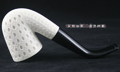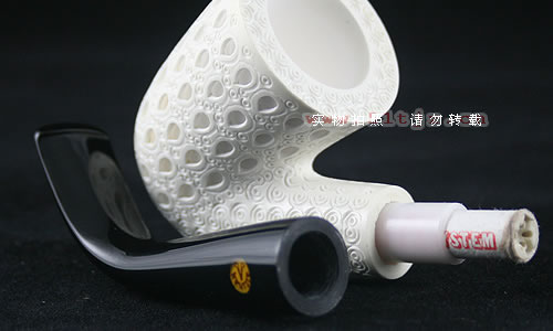 海泡石(meerschaum) 德语“海泡沫”的意思,传说是由海浪头的白沫凝成.海泡石是一种珍贵的多孔矿物,主要成分为含水硅酸镁(magnesium silica),是自然界中最具渗透性的物质之一,由数百万年前,海中微生物的躯壳沉积洋底,石化而成。海泡石是一种极轻质,吸收性极佳的特殊天然材料。最优质、最适合用于烟斗制作的海泡石原料,产自土耳其伊斯坦布尔东南约200英里,名为eskisehir的小村庄附近。工人深入地底约400英尺采挖,过程艰辛。经历多重 筛选、去杂工序,并由熟练工匠精心雕琢,方成就做工精致细巧的精品烟斗和烟嘴。